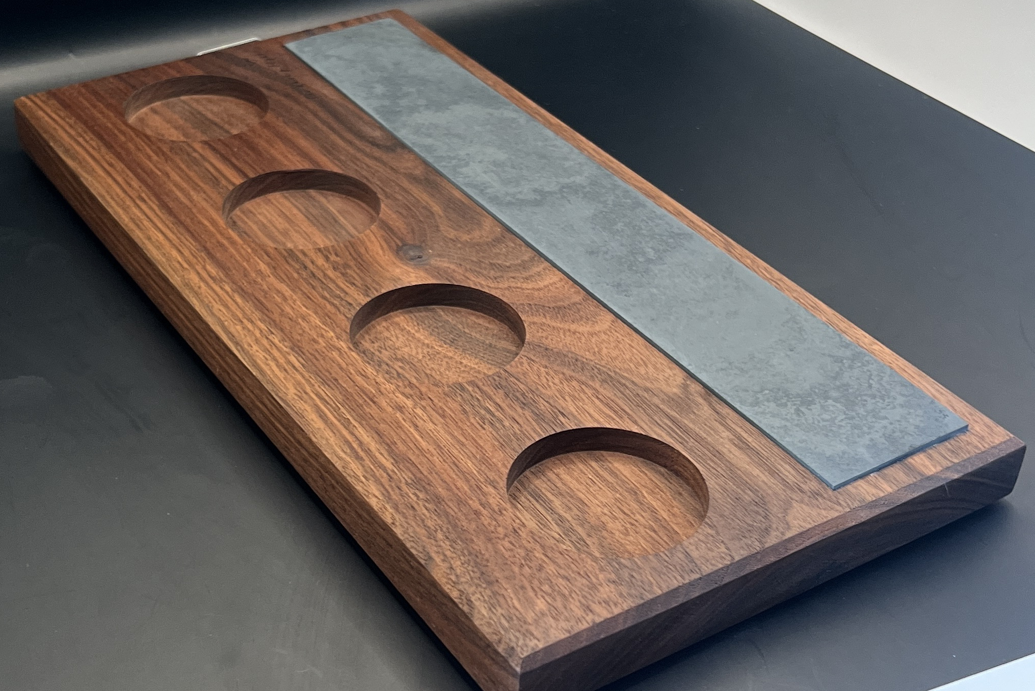 In 2019 I ordered a tasting flight from a local whiskey bar and received a strip of wood with three glasses and a piece of masking tape with faint handwriting identifying the $70 of Japanese whiskey it contained. While it didn’t change the flavor of the whiskey, the disappointing presentation made the whole experience unsatisfying and I knew there had to be a better way. After five years of refining the design, materials, and construction, The Whiskey Flight tasting board delivers the elevated experience those expertly crafted whiskies deserved.